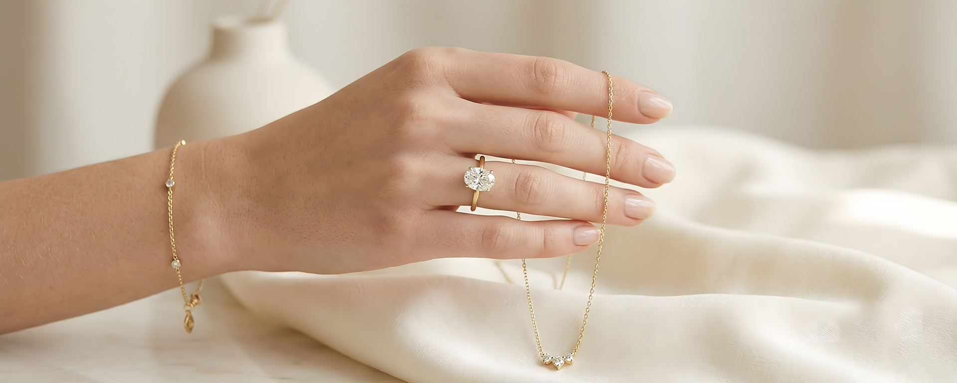Every piece undergoes a strict quality check process once it arrives at our warehouse. We inspect for plating consistency, stone settings, and clasp durability before any item is packed for your order.